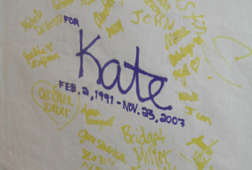 Some of the Grafton kids wrote Kate’s name with her dates of life underneath, then encircled her name with their signatures. They used yellow, Kate’s favorite color.